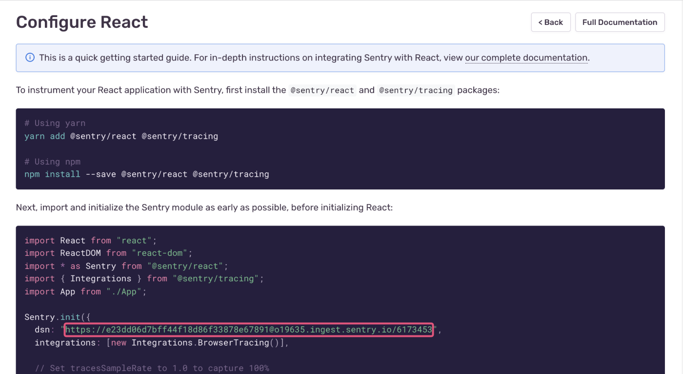 Sentry.init({ dsn: "https://public@sentry.example.com/1" });