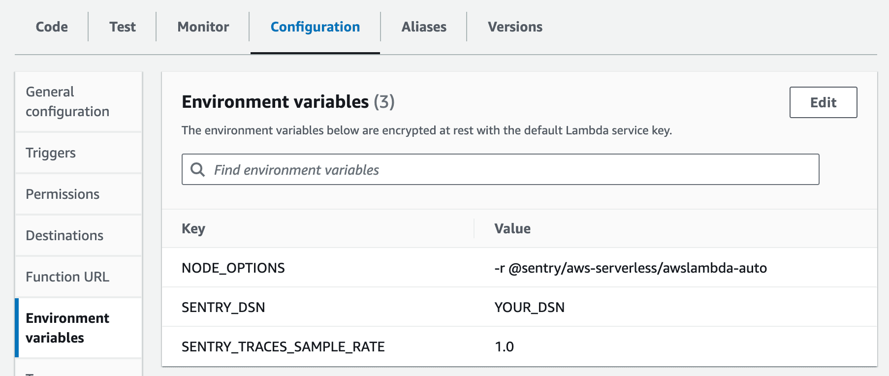 NODE_OPTIONS="-r @sentry/aws-serverless/awslambda-auto"