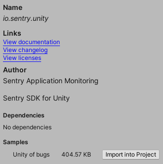 Install the package via the Unity Package Manager using a Git URL to Sentry's SDK repository: