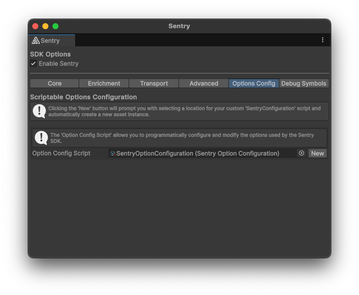 We've added Sentry Options Configuration to the Options Config tab in the Sentry editor window to provide a way to modify options programmatically.